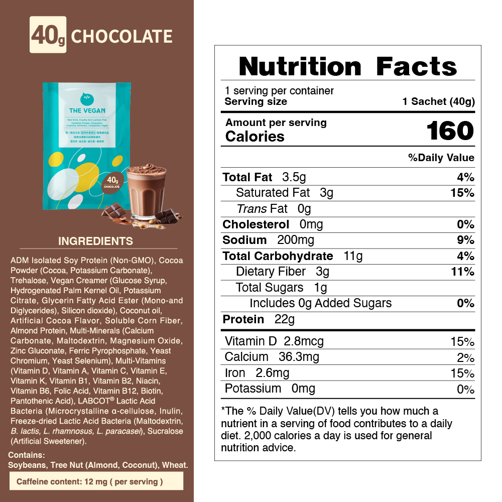 【THE VEGAN】Classic Plant-Based Protein – Chocolate (40g)