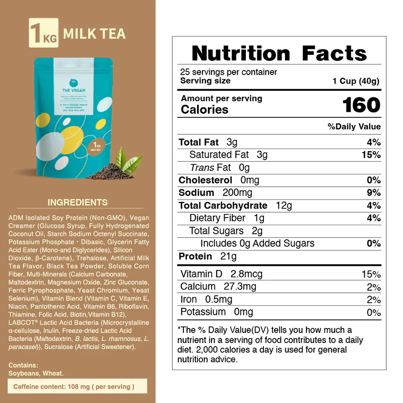Tastes just like your favorite milk tea—sweet, comforting and never too much. With this cup, you get to enjoy both deliciousness and nutrition in one go. ⚠️ THE VEGAN’s “Milk Tea / Milk / Latte” flavors refer to taste profiles only. All products are 100% plant-based & contain no dairy ingredients.