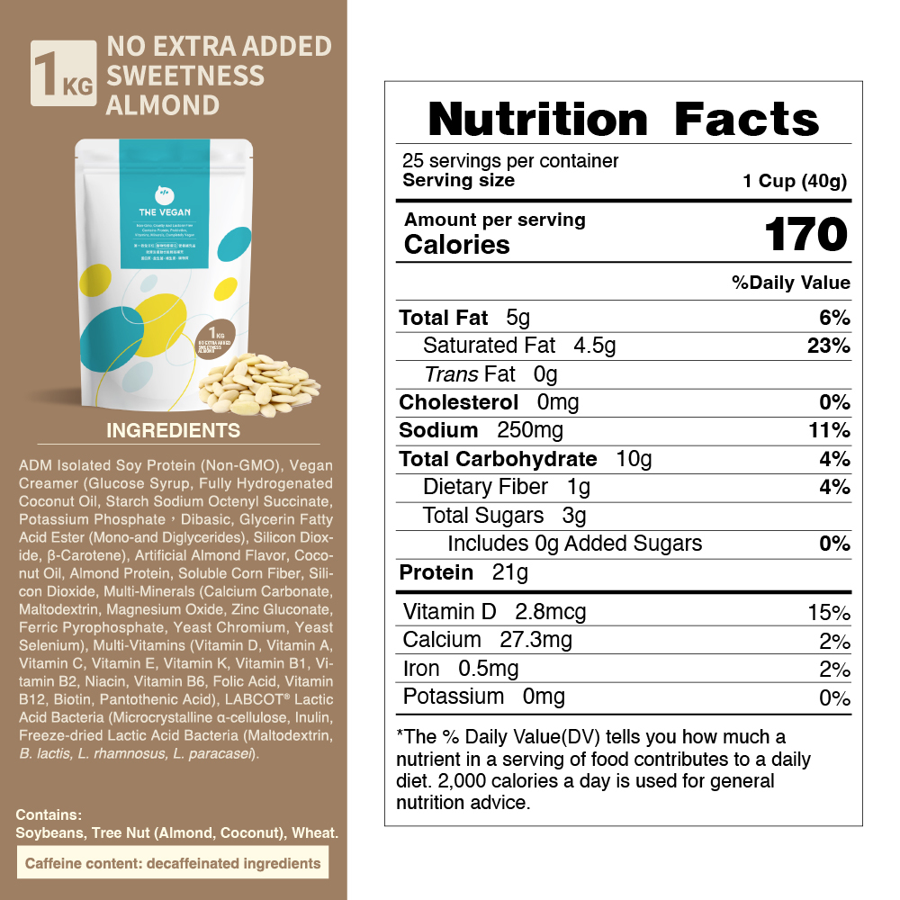 【THE VEGAN】Classic Plant-Based Protein – No Extra Added Sweetness Almond (1kg)