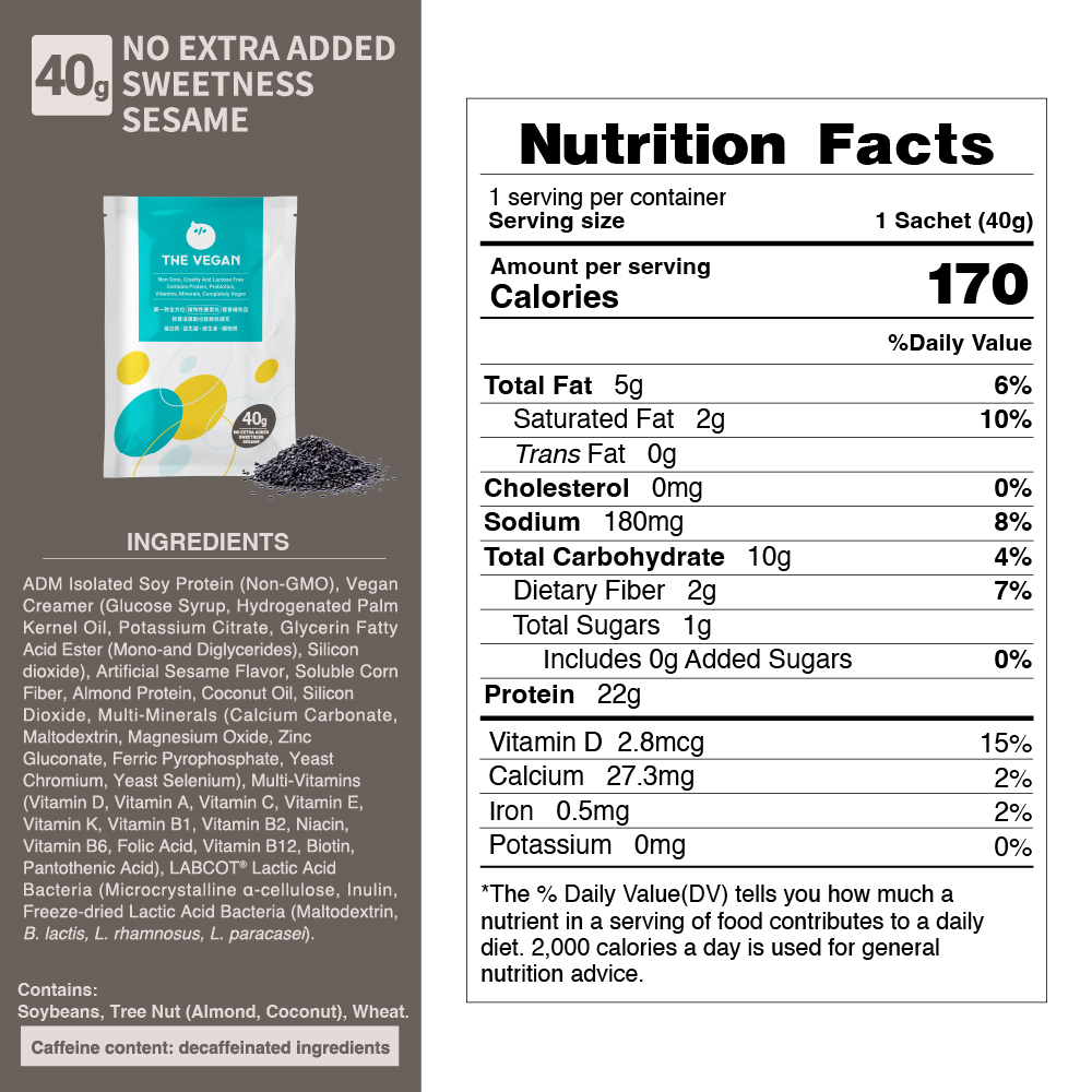 【THE VEGAN】Classic Plant-Based Protein – No Extra Added Sweetness Sesame (40g)