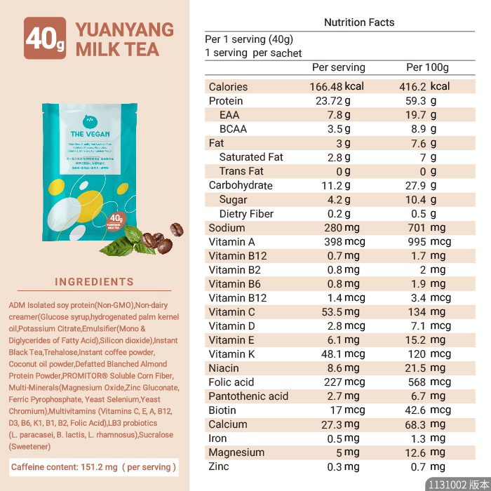 【THE VEGAN】Classic Plant-Based Protein – Yuanyang Milk Tea (40g)