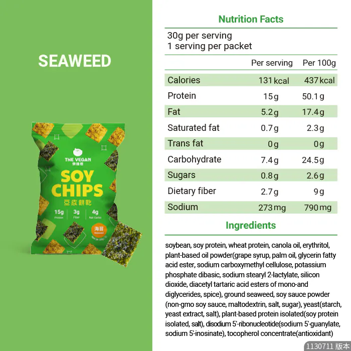 🌿 Savory, crispy, and packed with seaweed umami. Lightly seasoned with roasted seaweed for a clean, ocean-inspired flavor — each bite is delightfully crisp and totally addictive. Snack freely, we’ve got your health in mind. ✔ 100% Plant-Based / Vegan-Friendly